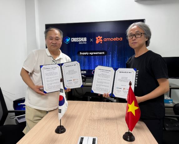 설립 6개월 만에 베트남 솔루션 공급기업 '아메바(Amoeba)'사와 아이디블록 60만 건 공급계약을 체결한 크로스허브는 해당 계약을 통해 기술력과 시장성을 동시에 인정받고 성공적으로 글로벌 시장 진출의 발판을 마련했다.