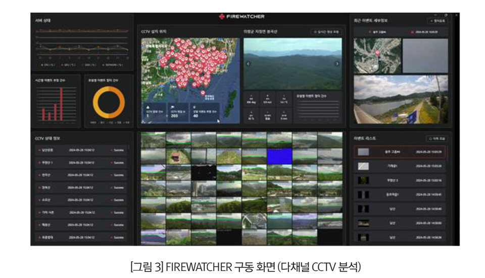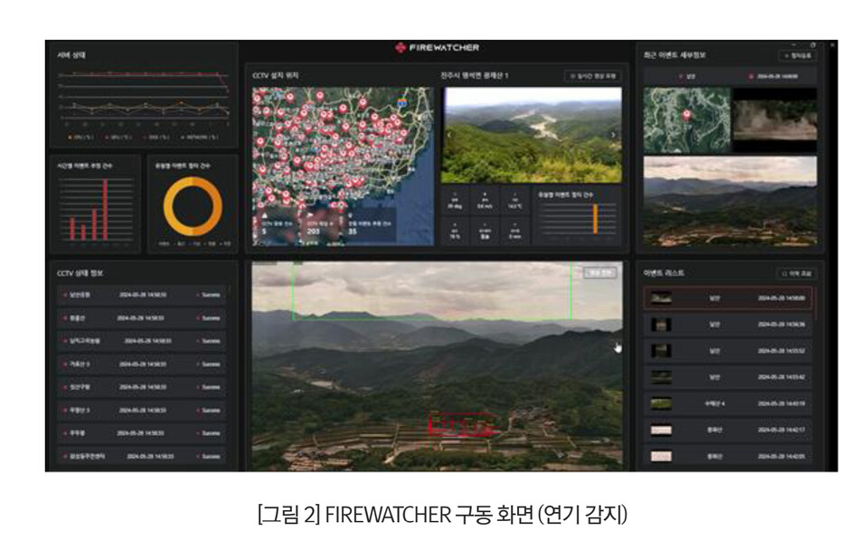 이미 산불 감지 분야에서 국내 최초로 GS(Good Software) 1등급 인증을 획득하였고, CCTV 50채널 환경 내 실시간 연기 감지 정확도를 측정하는 KTL 시험에서 93.41%의 정확도를 기록해 그 우수성을 입증하였습니다.